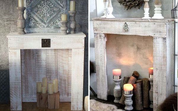 Сверху всей конструкции можно привесить узкую полочку на ширину камина, которая будет служить подставкой для фотографий, подсвечников или других милых безделушек.