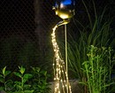 Еще один оригинальный вариант декоративной подсветки представлен в галерее на третьей и четвертой фотографиях. На них использованы небольшие лейки и гирлянда. Последнюю, кстати, можно найти как на солнечных батареях, так и на обычных. Выбирайте то, что удобнее для вас. Плюс гирлянды в ее универсальности: украсьте ей лестницу, деревья и даже стены дома — все зависит от фантазии.